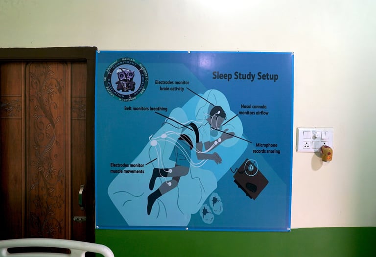 As a trusted Sleep Institute, we specialize in complete sleep disorder evaluation and management. Our services include Polysomnography (Sleep Study), MSLT, MWT, HSAT, CPAP/BiPAP titration, Actigraphy and expert sleep disorder consultations for conditions such as obstructive sleep apnea, insomnia, narcolepsy, and restless leg syndrome.